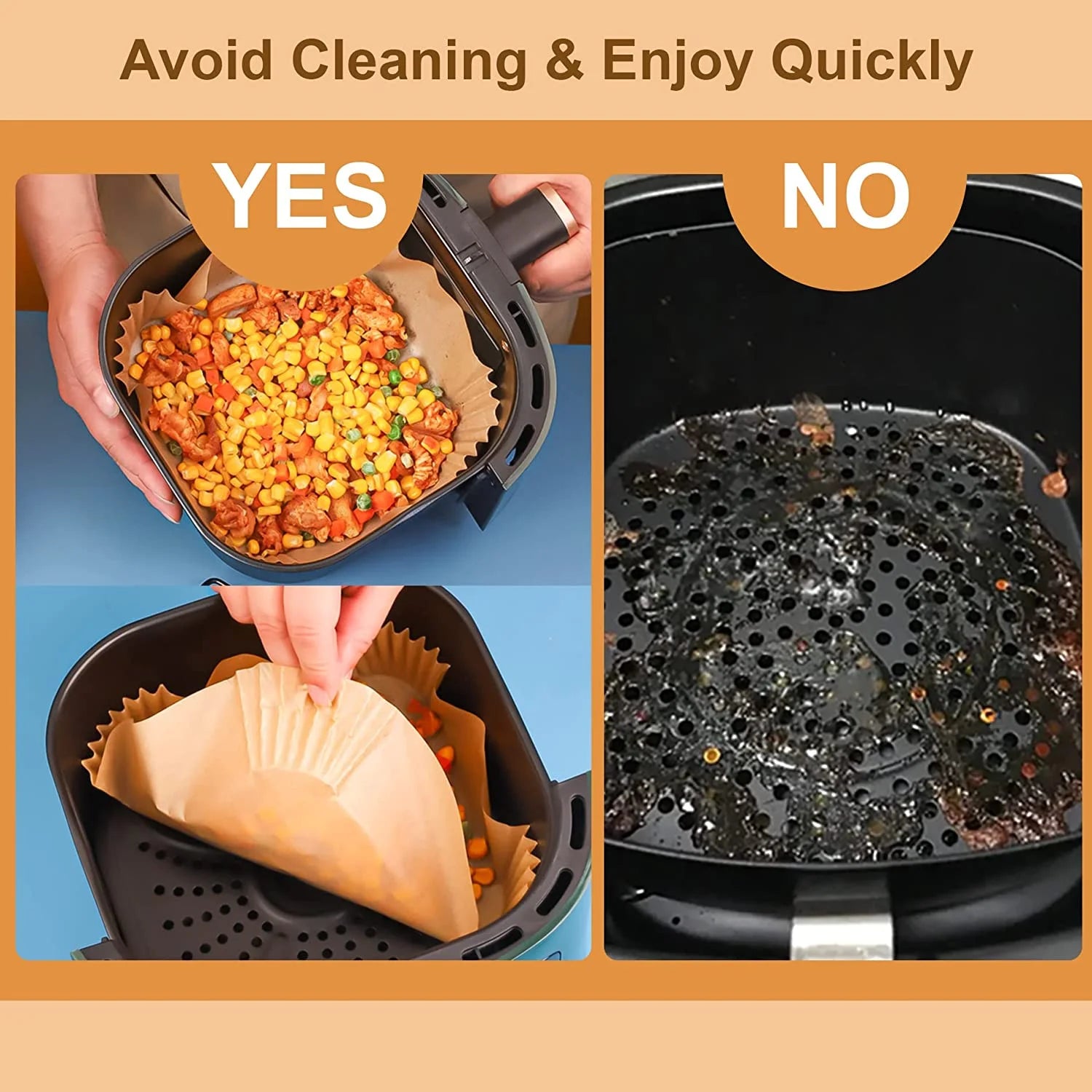 100PCS Square Air Fryer Paper Liners Disposable Parchment