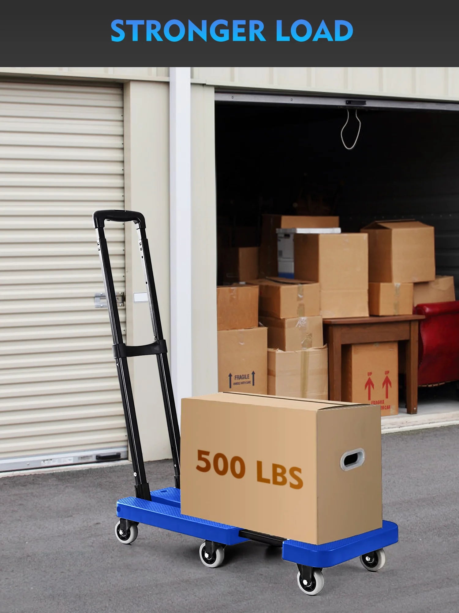 M BUDER Folding Hand Truck, 500 lbs Heavy Duty Dolly Cart, Utility Platform Cart with 6 Wheels for Travel, House, Office, Shopping, Moving Use - Blue High Quality PP Plastic Folded Size 11.8 x 17.7”