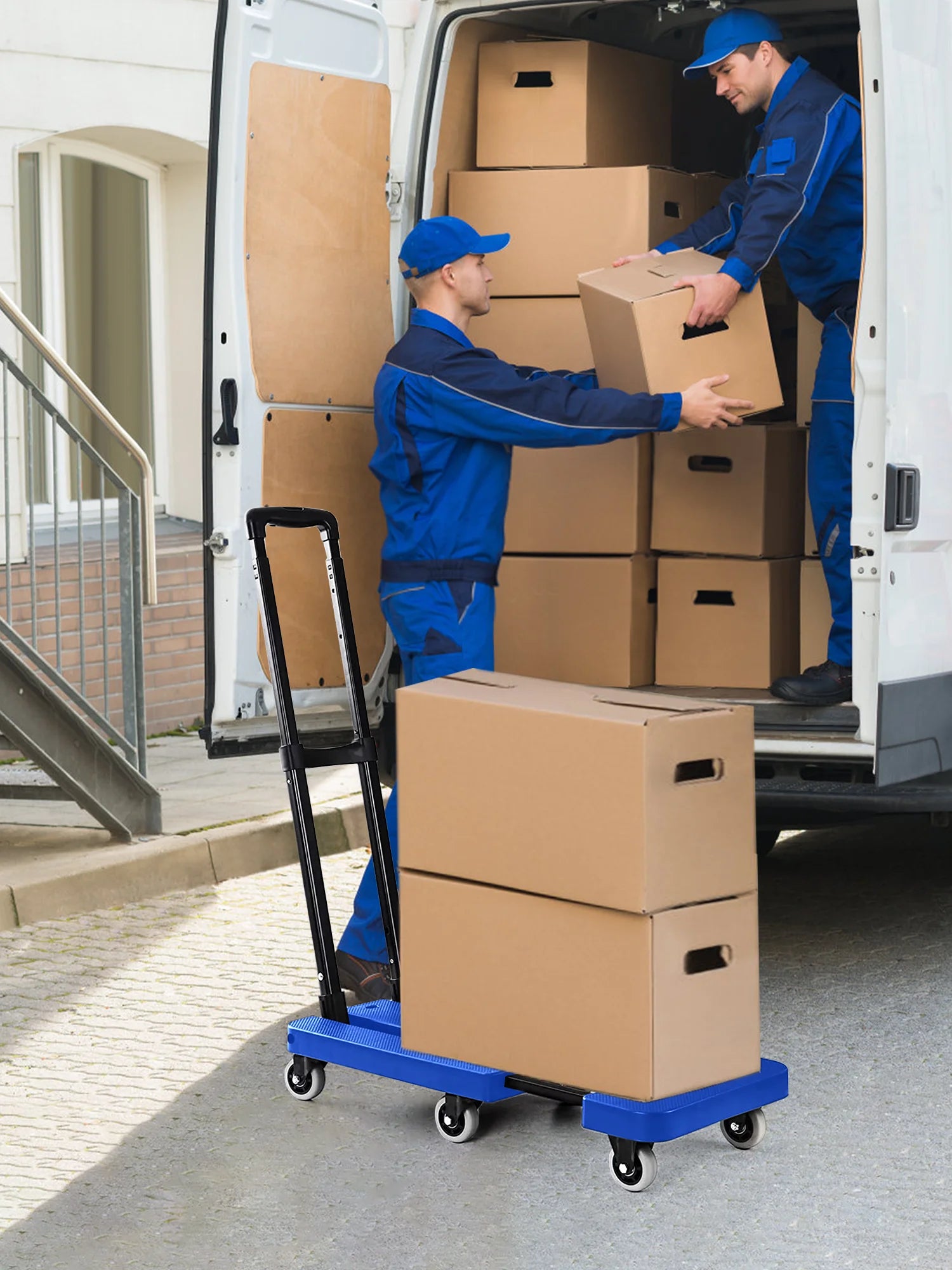 - 【Multifunctional & Widely Use】 The hand truck is suitable for shopping, business travel, cargo handling, luggage moving, outdoor carry, warehouse cargoes delivery, moving house, office daily use and so on.