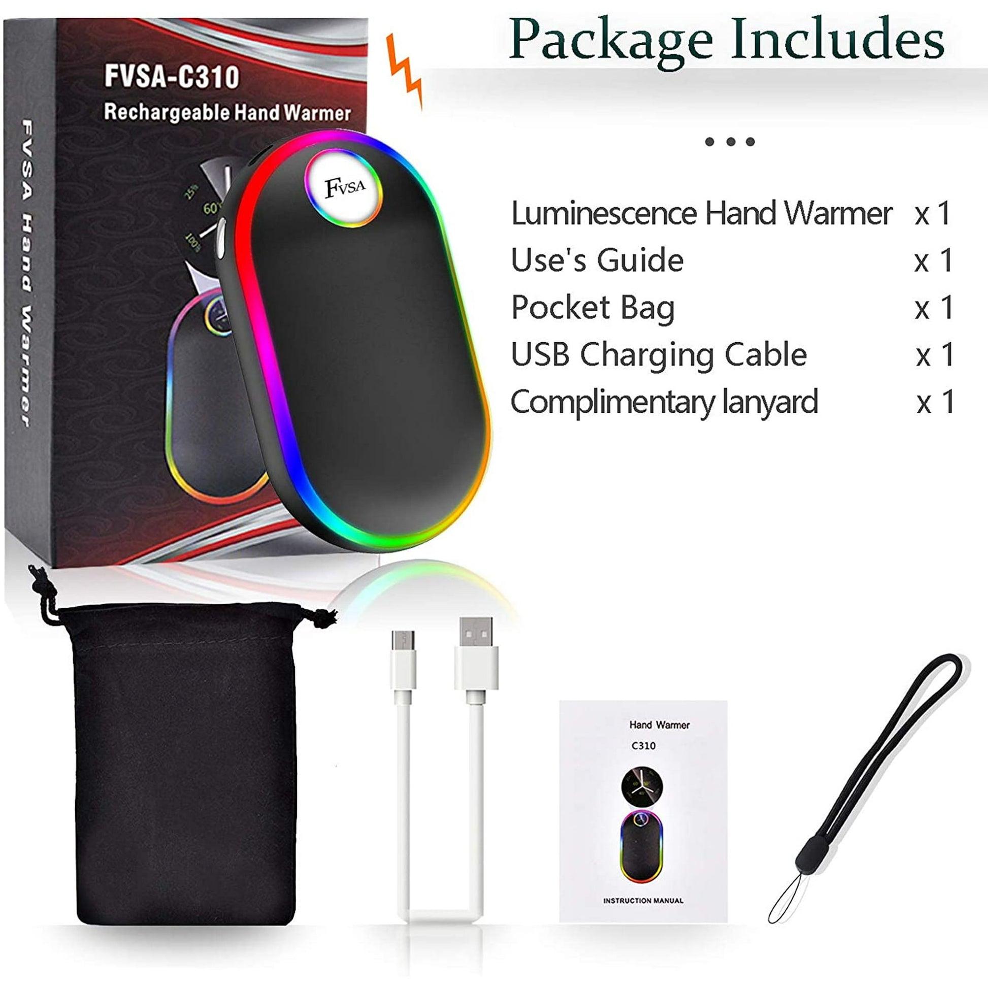 Madala Hand Warmers, 10000Mah Hand Warmers Rechargeable, 7 Changing Colors Lights Electric Hand Warmers, Reusable Hand Warmer for Raynauds, Outdoors, Hunting, Golf, Camping, Women Mens Gifts(Black)