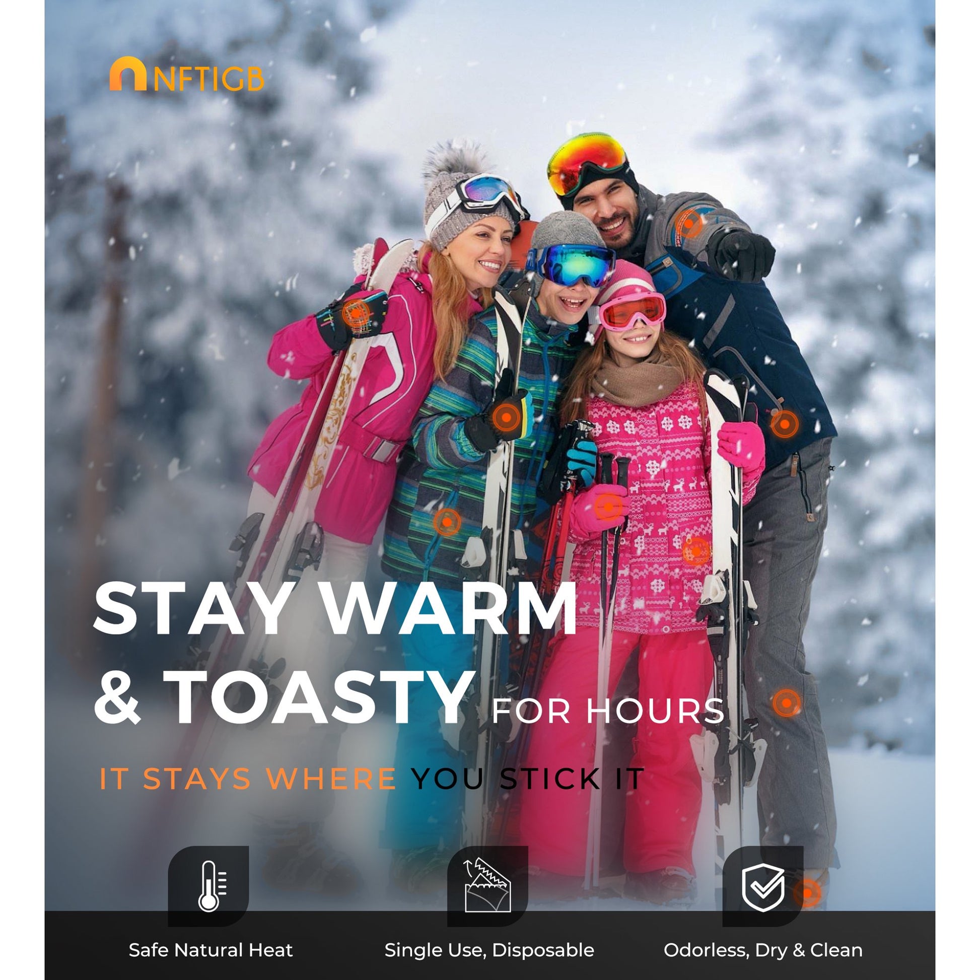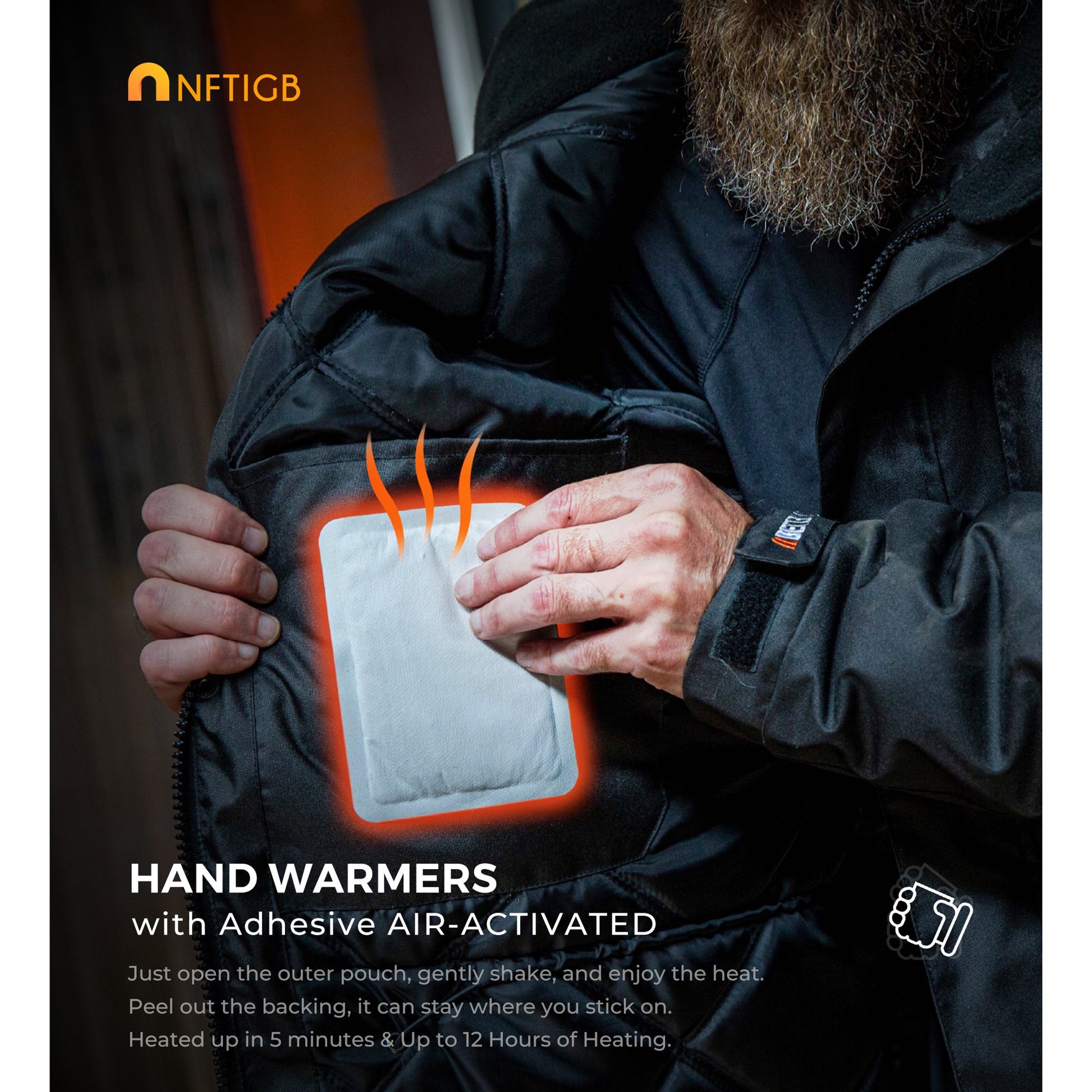 NFTIGB Body Warmer Hand Warmers with Adhesive Backing, Disposable 85Pcs, Long Last Safe Heated 12H