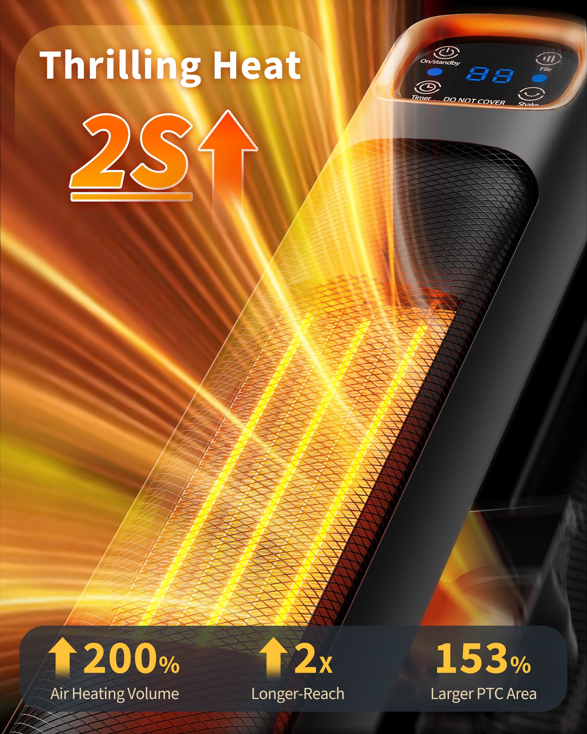 Stay warm in style with the NFTIGB 1500W PTC ceramic heater. Designed for fast and energy-efficient heating, it delivers instant comfort on chilly days and nights. With a sleek black finish and compact design, it fits effortlessly into any room.