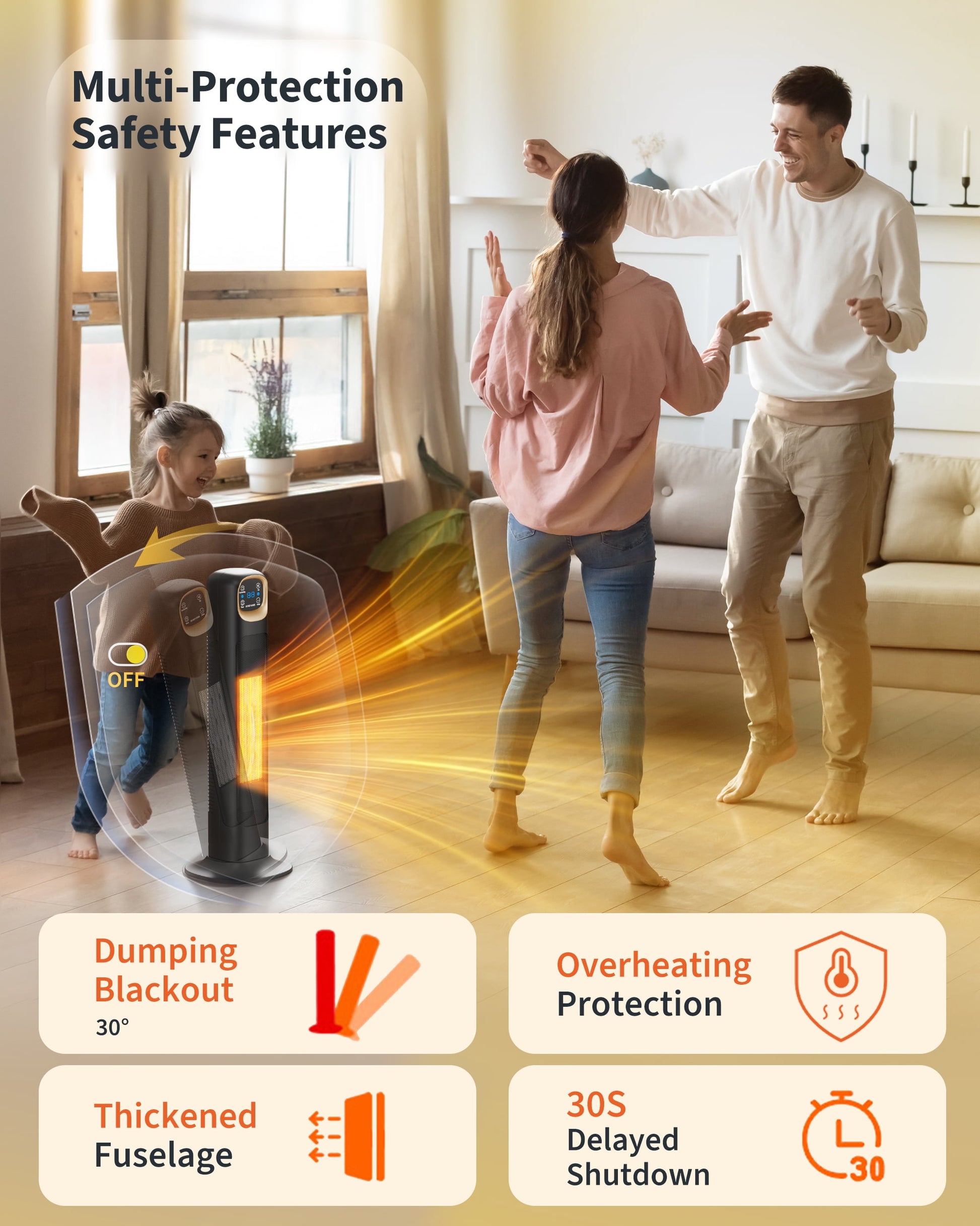 NFTIGB Space Heaters for Home, 24" 1500W Oscillating Electric Tower Electric Heater with Remote, PTC Ceramic Fast Heating,Black,New