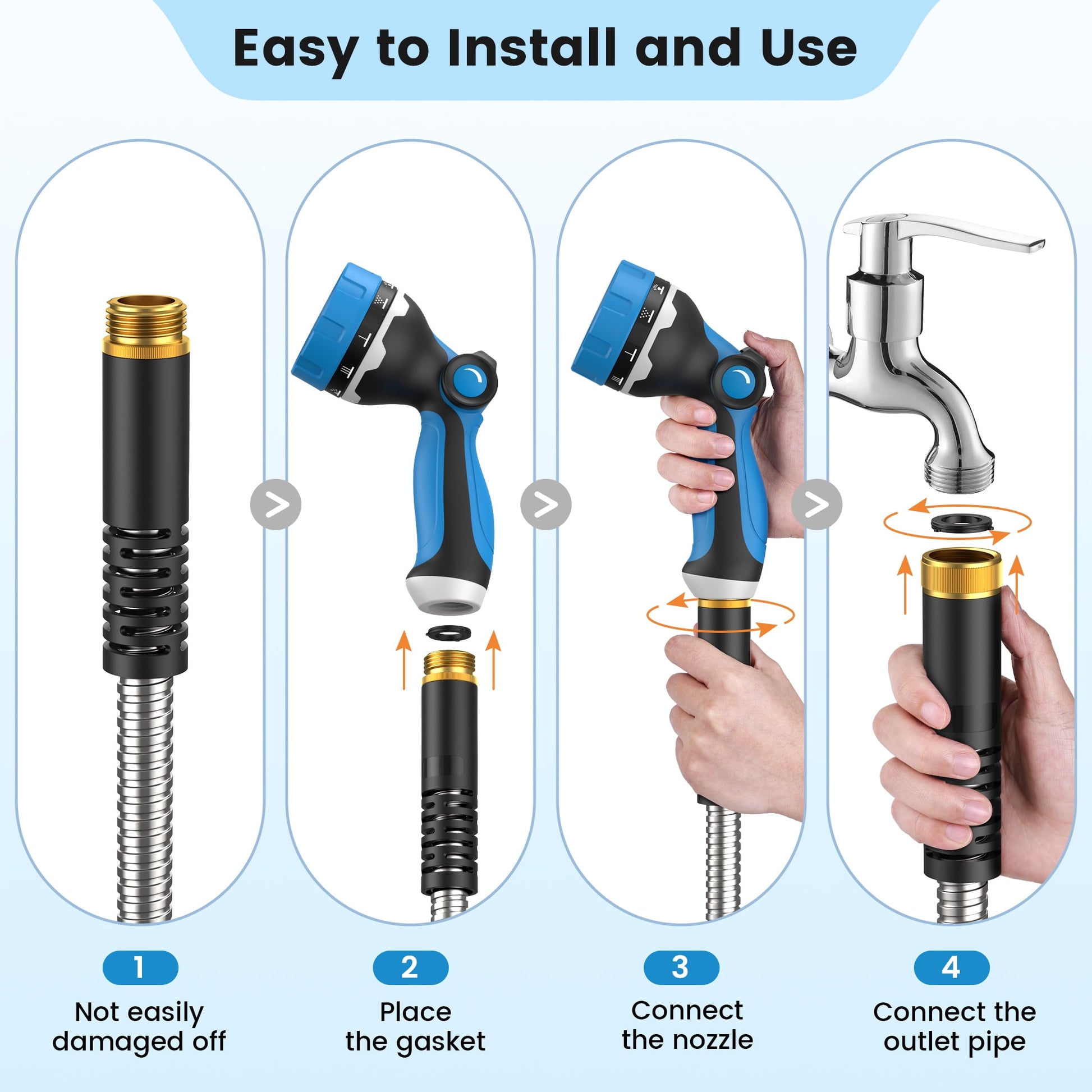 Ultra Durable: The OHHANI garden hose is made of commercial-grade stainless steel and high-quality PVC for strength and durability. It is rust-resistant and effectively protects the inner tube. This water hose for outdoor is leak-proof, puncture-proof, dump-proof, and tear-proof, allowing for long-term use on hard surfaces and safe passage through bushes or wire fences without accidental bursts.