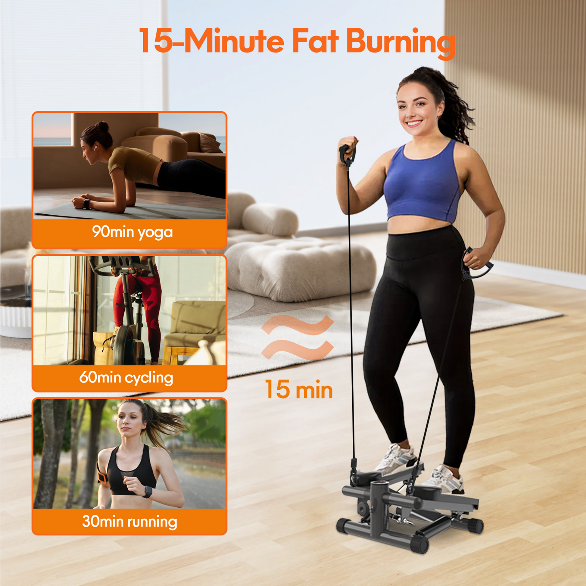 - LED Monitor Tracks Your Workout - Stay informed with the smart LCD monitor, tracking the count of steps, exercise time, and calories burned. Make your exercise more effective and aligned with your goals, and provide you with a more scientific and data-driven approach to weight loss and exercise. Equipped with resistance bands to increase the possibility of twist workout.
