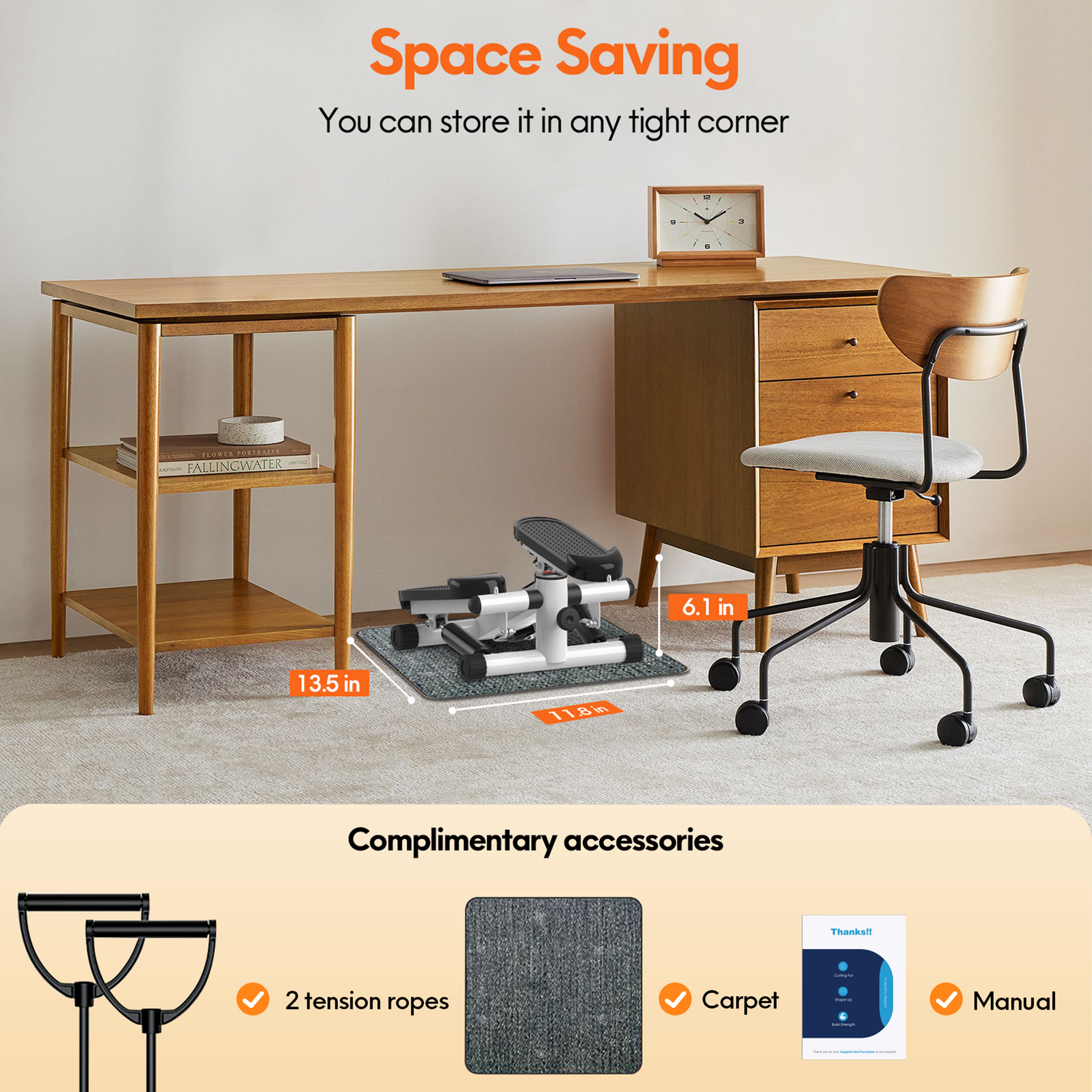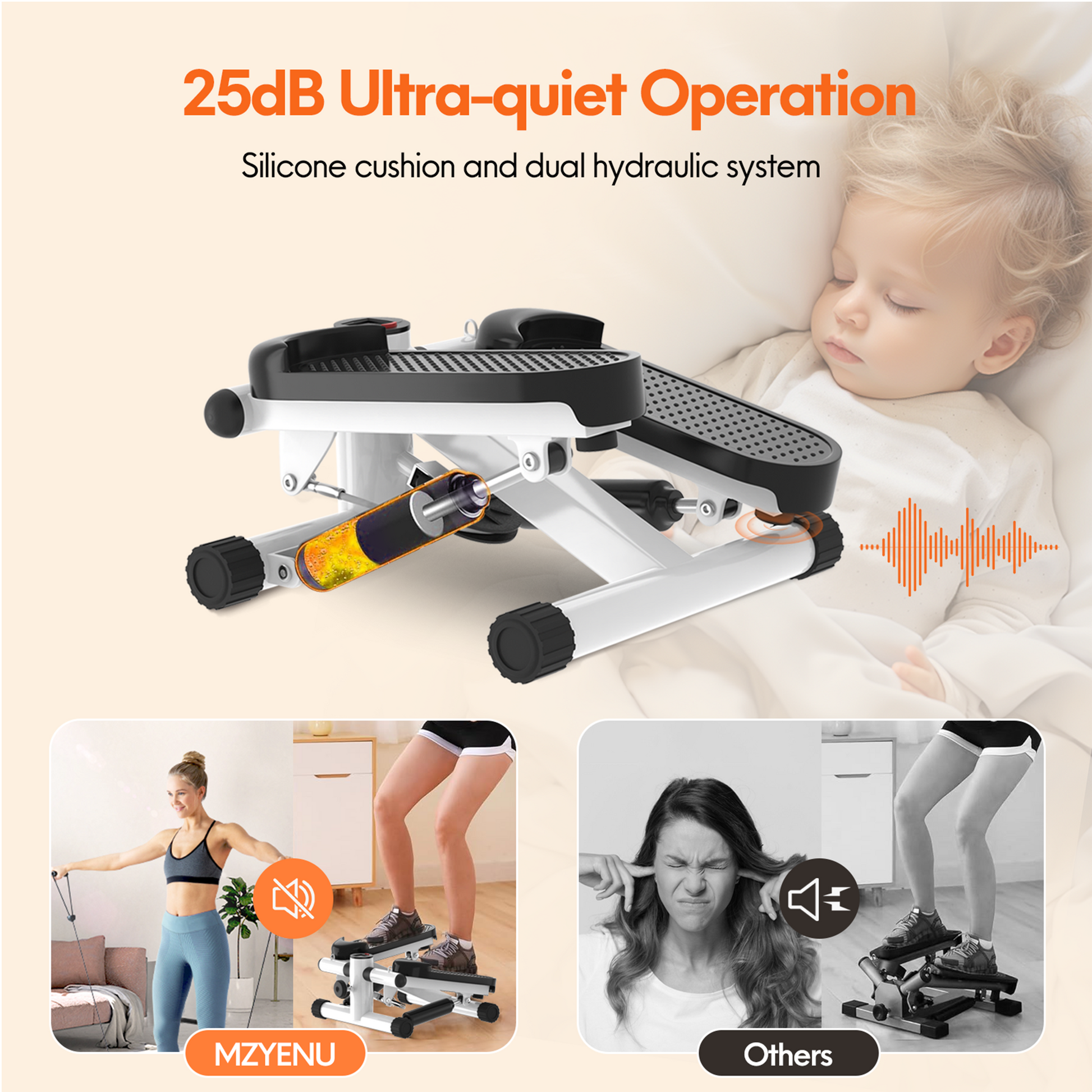 - Super Quiet Design - This mini stepper exercise machine offers smooth and ultra-quiet hydraulic drive system and ensures stability and increased resistance while reducing noise from friction. During exercise, it operates at a decibel level of 25 dB, ensuring a quiet workout that does not disturb other people. Comes with a free stepper mat, which is a equipment extra you get to avoid scratching the floor and generating noise.