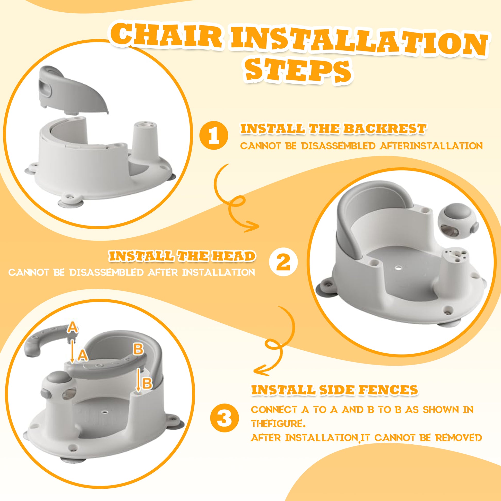- Stable Suction Cups: Powerful suction cups keep the bathtub securely in place, ensuring safety.Comfortable Design: Soft anti-slip cushion and spacious design ensure comfort while supporting the baby in learning to sit up.Support Backrest: A high and sturdy backrest gives your baby support; for infants ages 5-10 months who can sit up unassisted but who cannot yet pull up to standing.Not for use in non-rectangular, oval, jacuzzi, or whirlpool-style tubs. Only use one accessory in the tub at a time.