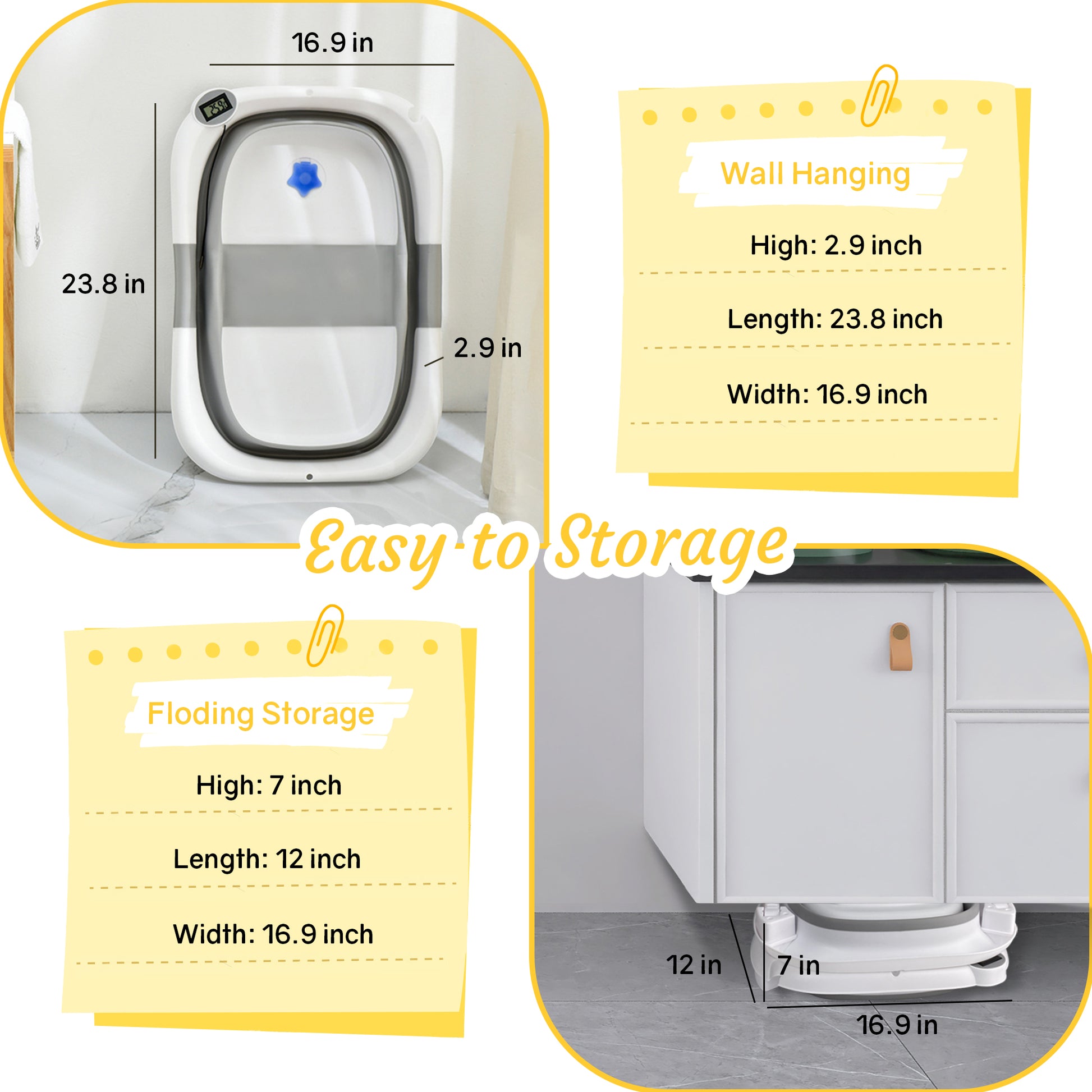 Our Baby Bathtub features a foldable, collapsible design, making it ideal for parents looking to save space. It can be effortlessly folded in just two steps, for easy storage in any corner.