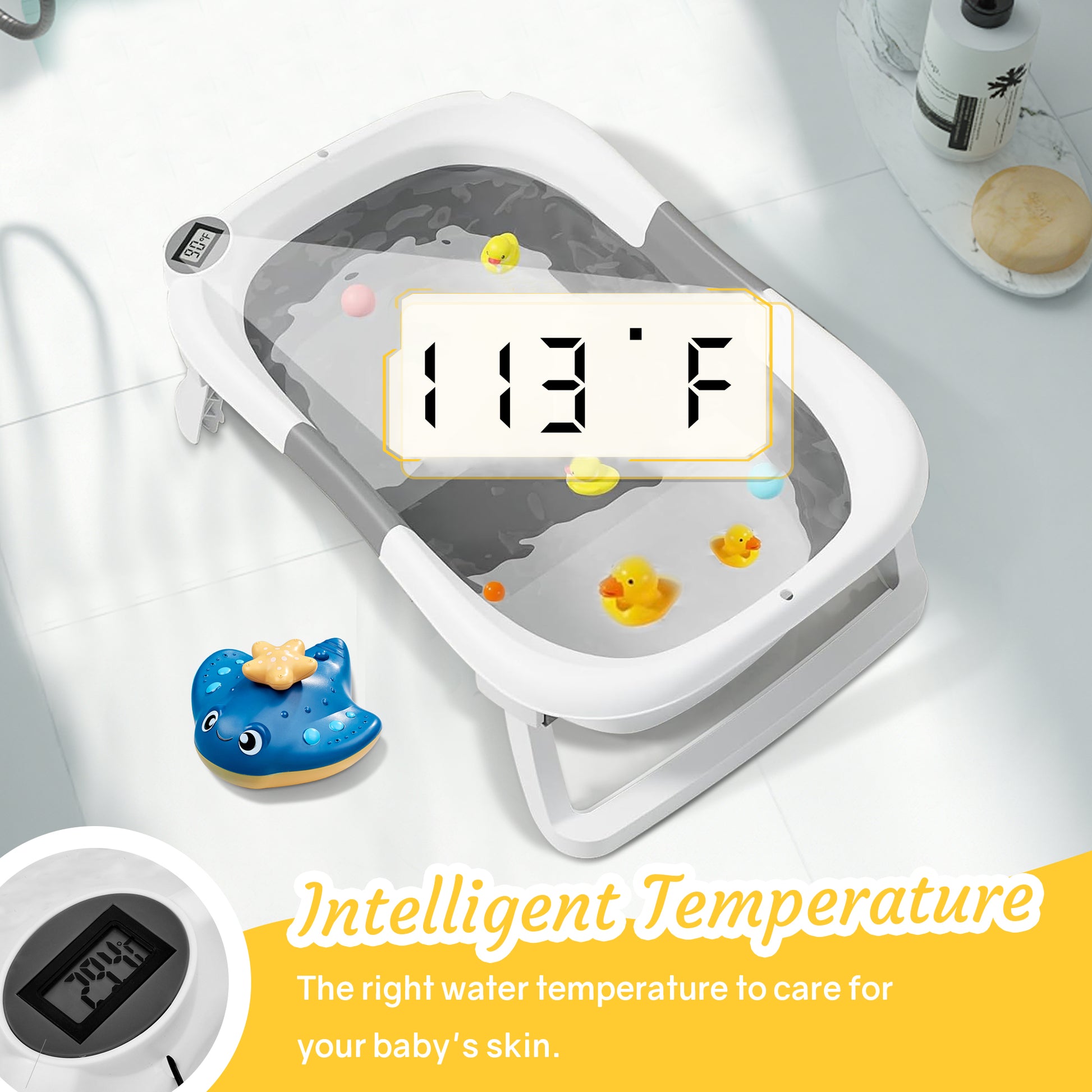 Unlike ordinary tubs, this infant bathtub is equipped with a real-time temperature sensor, allowing you to monitor and adjust the water temperature easily. This feature ensures your baby's safety and comfort, helping to provide a soothing bath experience every time.