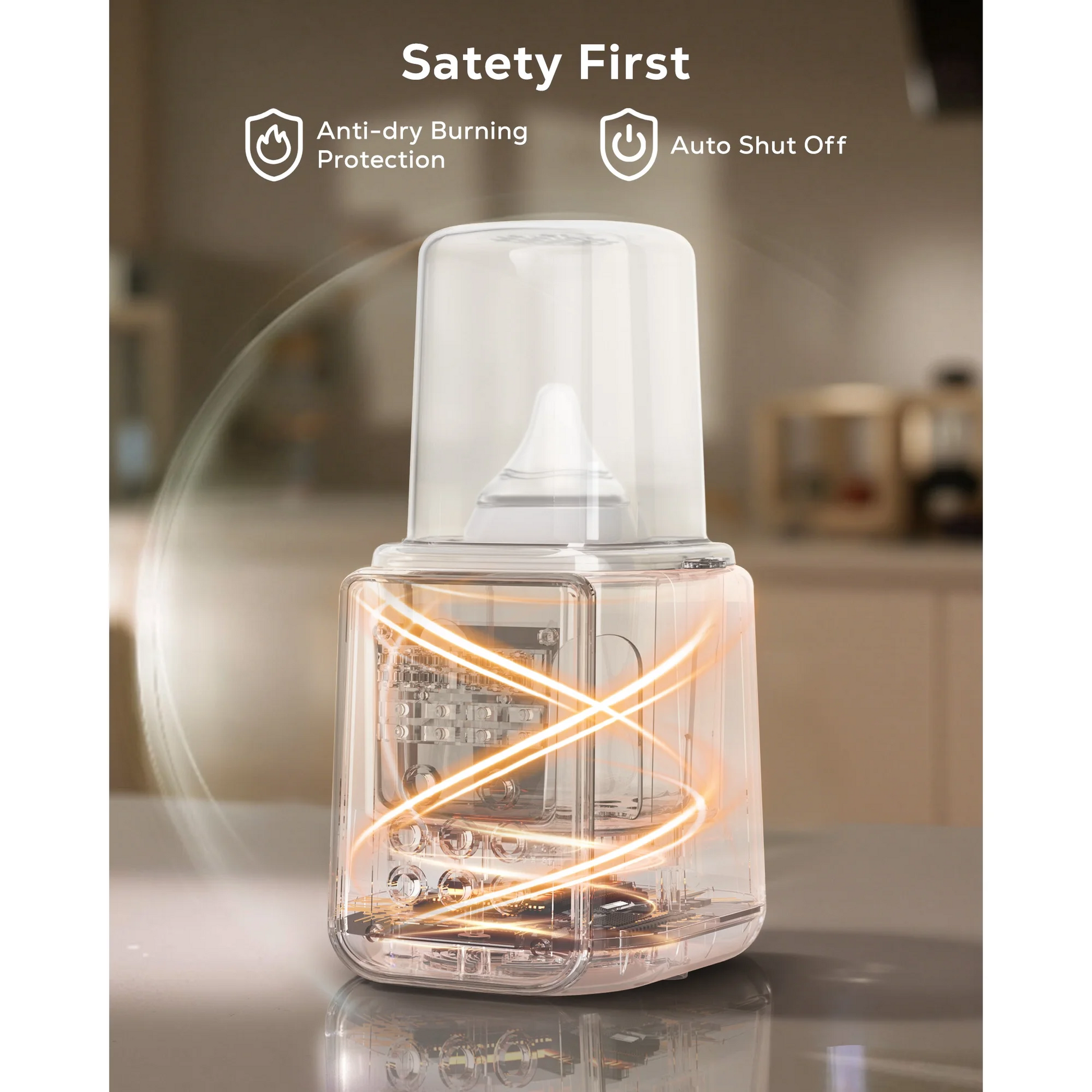 - [Easy to Clean]: This baby bottle warmer and sterilizer combo features a cleaning brush, basket and sanitizer lid for quick and easy cleaning and reuse.