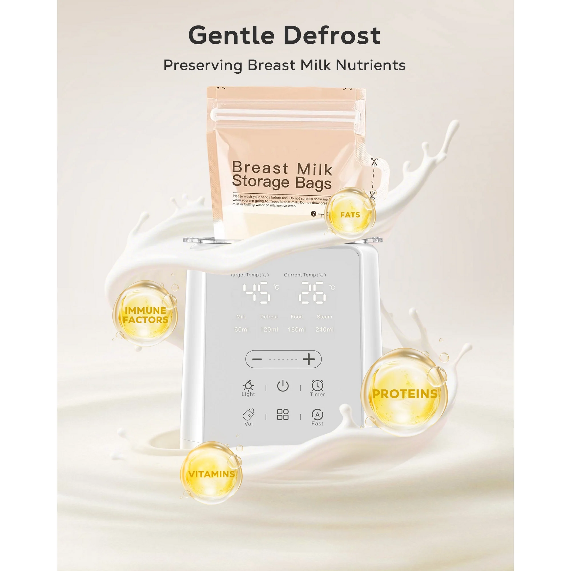 - [Intelligently Heating]: Our intelligent heating design makes the temperature more accurate. Choose the right milk status, bottle material, and milk volume, the baby bottle warmer will automatically heat to the temp closest to mom's breast milk, which helps your baby's digestion and retains the nutrients in the milk.