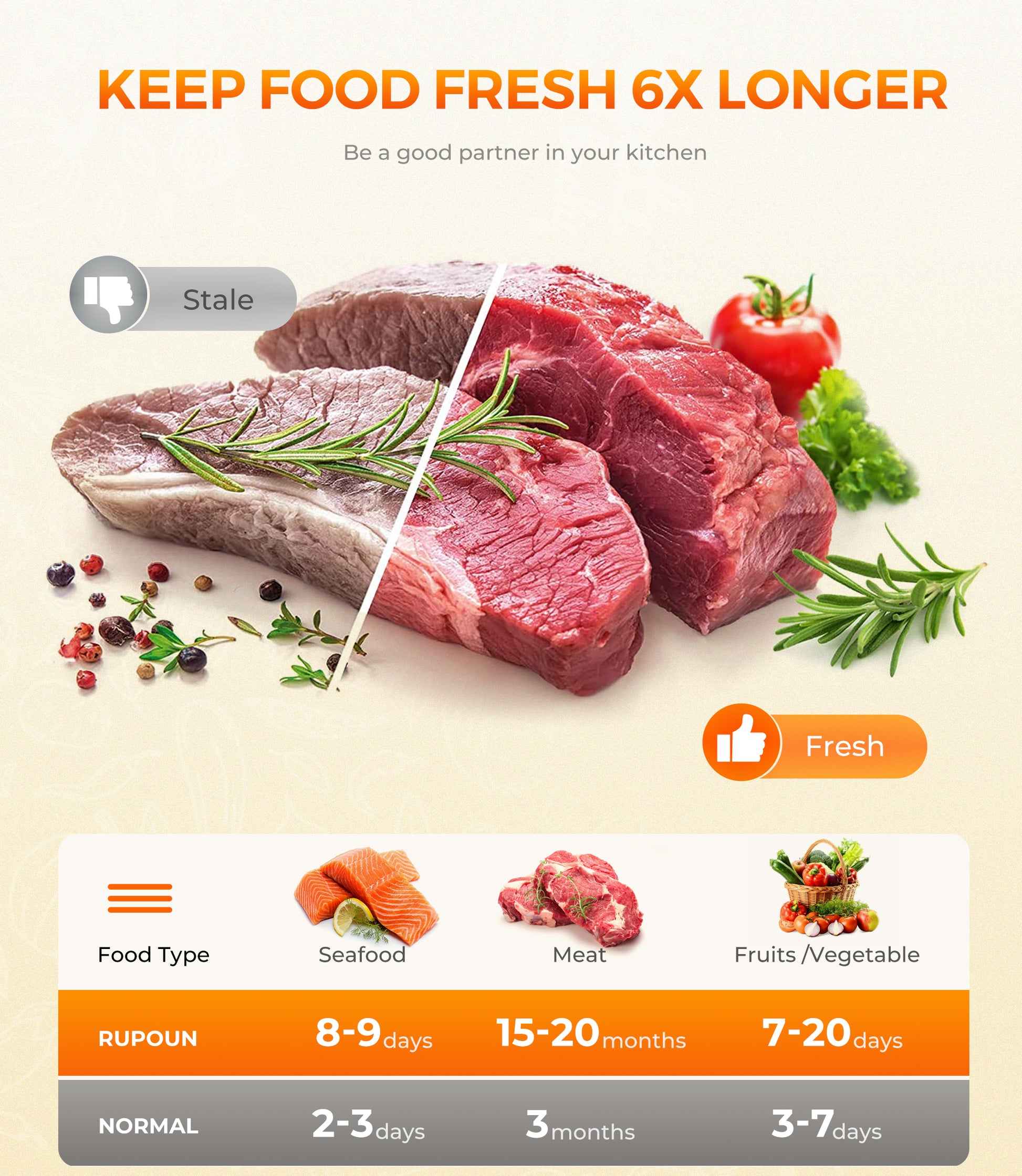 - Versatile Food Storage Applications: Rupoun vacuum seal bags preserve nutrients and extend the shelf life of a variety of foods. Perfect for storing vegetables, seafood, ribs, and beans, they can help you manage your food storage efficiently.