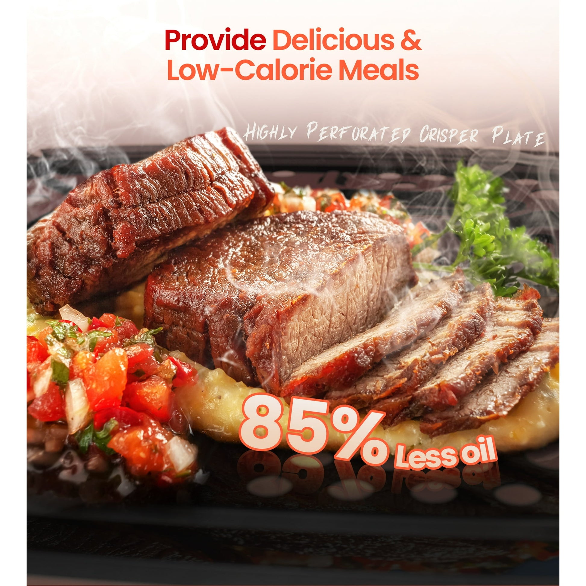 - Fast & Efficient Cooking: The compact Suodoka air fryer simplifies your cooking experience with customizable time and temperature settings up to 400°F. Cook meals up to three times faster than a conventional oven, saving time without compromising taste.
