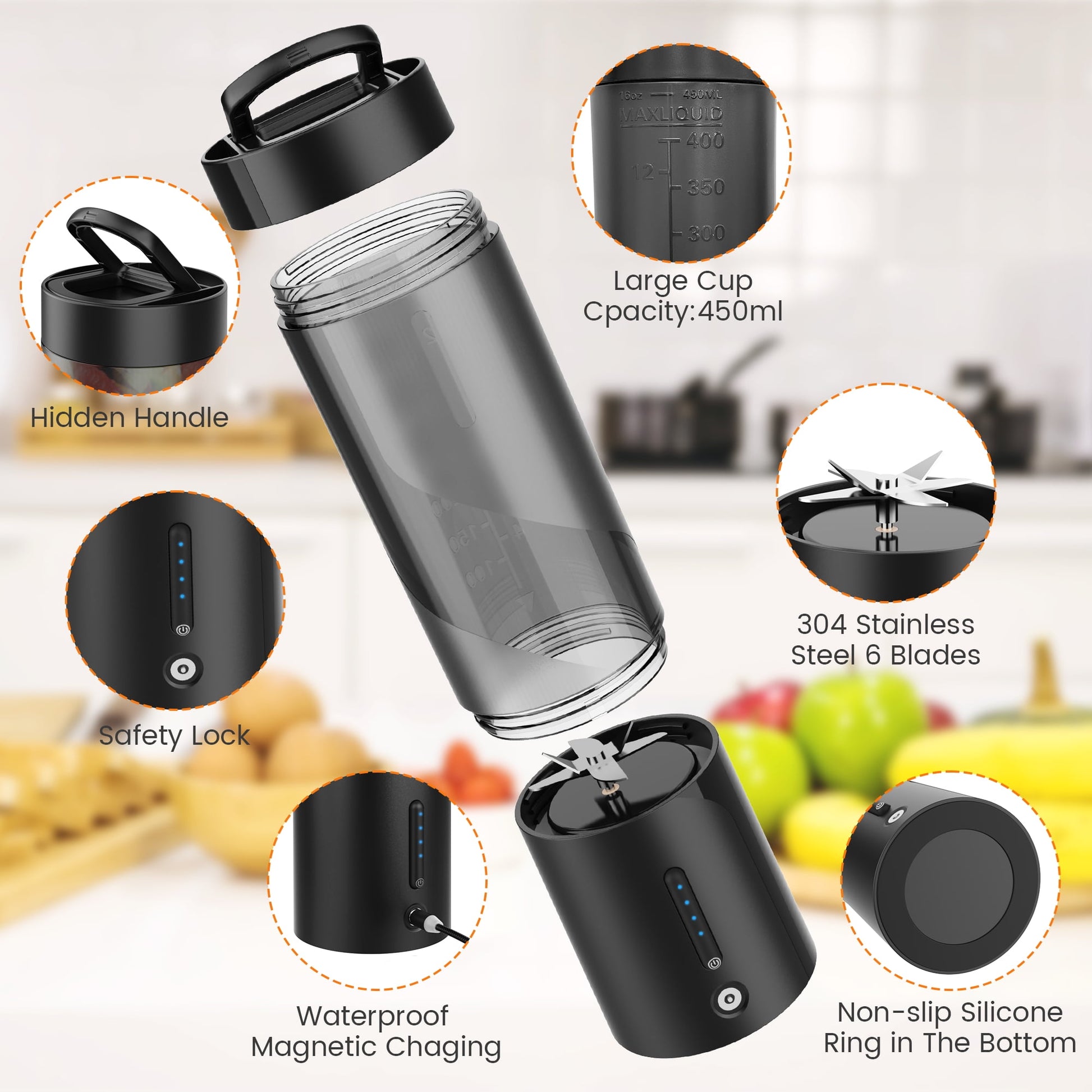 Suodoka 16 oz Personal Portable Blender for Shakes Smoothies, Magnetic USB Rechargeable, Mini Juicer Mixer with Handle Lid, Black