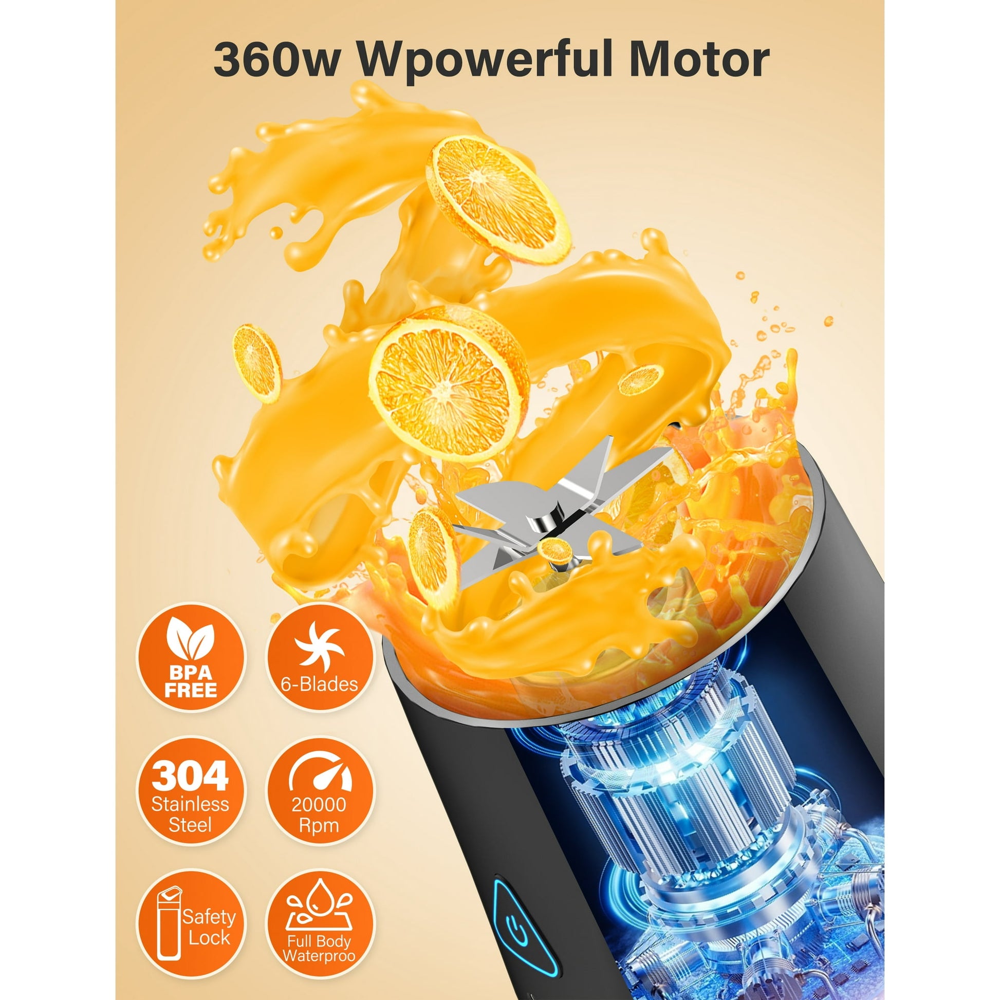 - 360W Smoothie Blender: Smoothie blender adopts 360 watts powerful copper casting motor, rotating speed to 20000 rpm, with 6 leaf stainless steel blades, easily crushing ice cubes fruits and vegetables, perfect for making nutritious, healthy shakes and smoothies only 40 seconds!portable blender for shakes and smoothies
