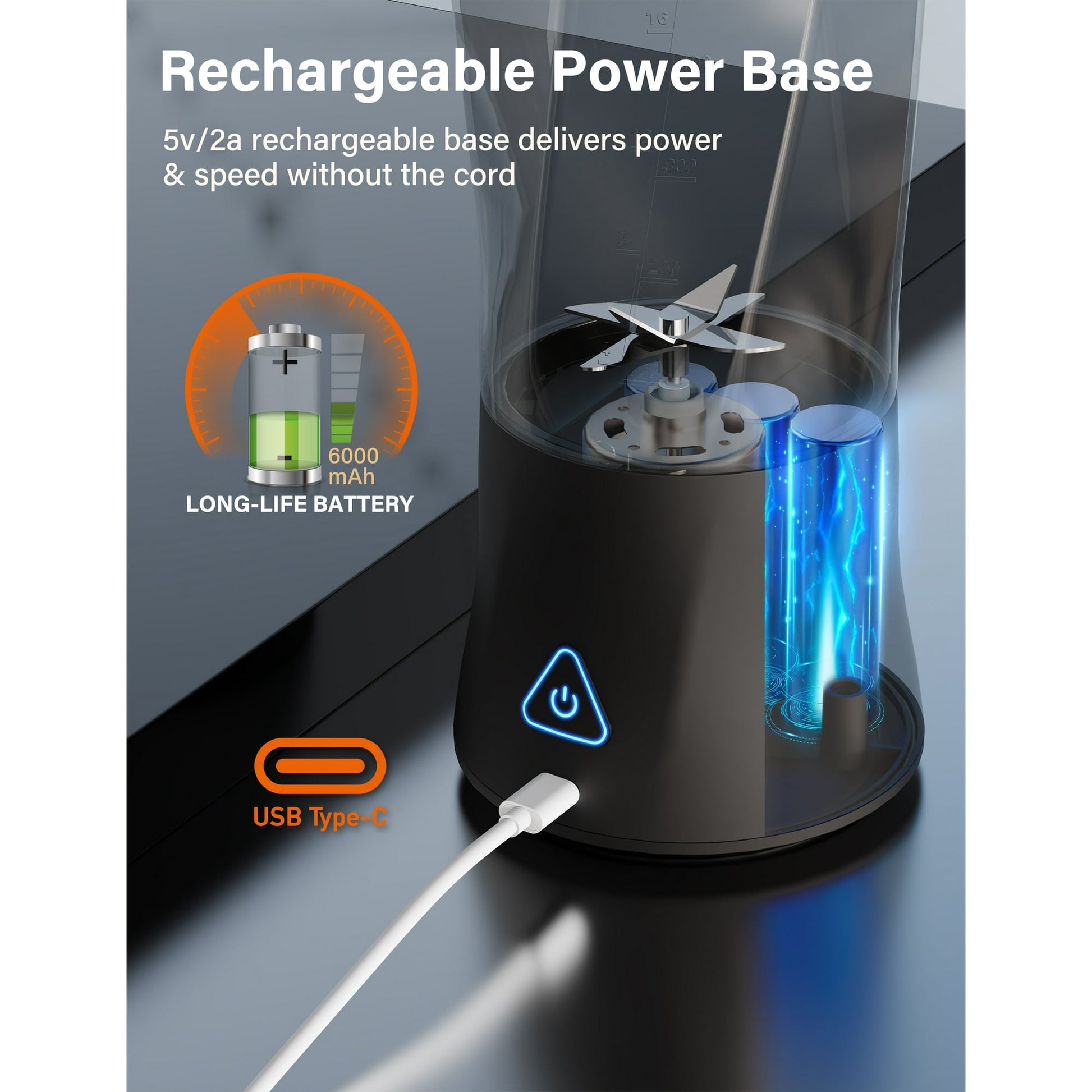 - USB-C Rechargeable for Easy Travel: Forget about cumbersome cords and outlets. Our blender recharges via USB-C, making it the perfect travel companion. Keep it charged and ready to go for healthy living on the move, whether you're at the gym, office, or exploring the world.