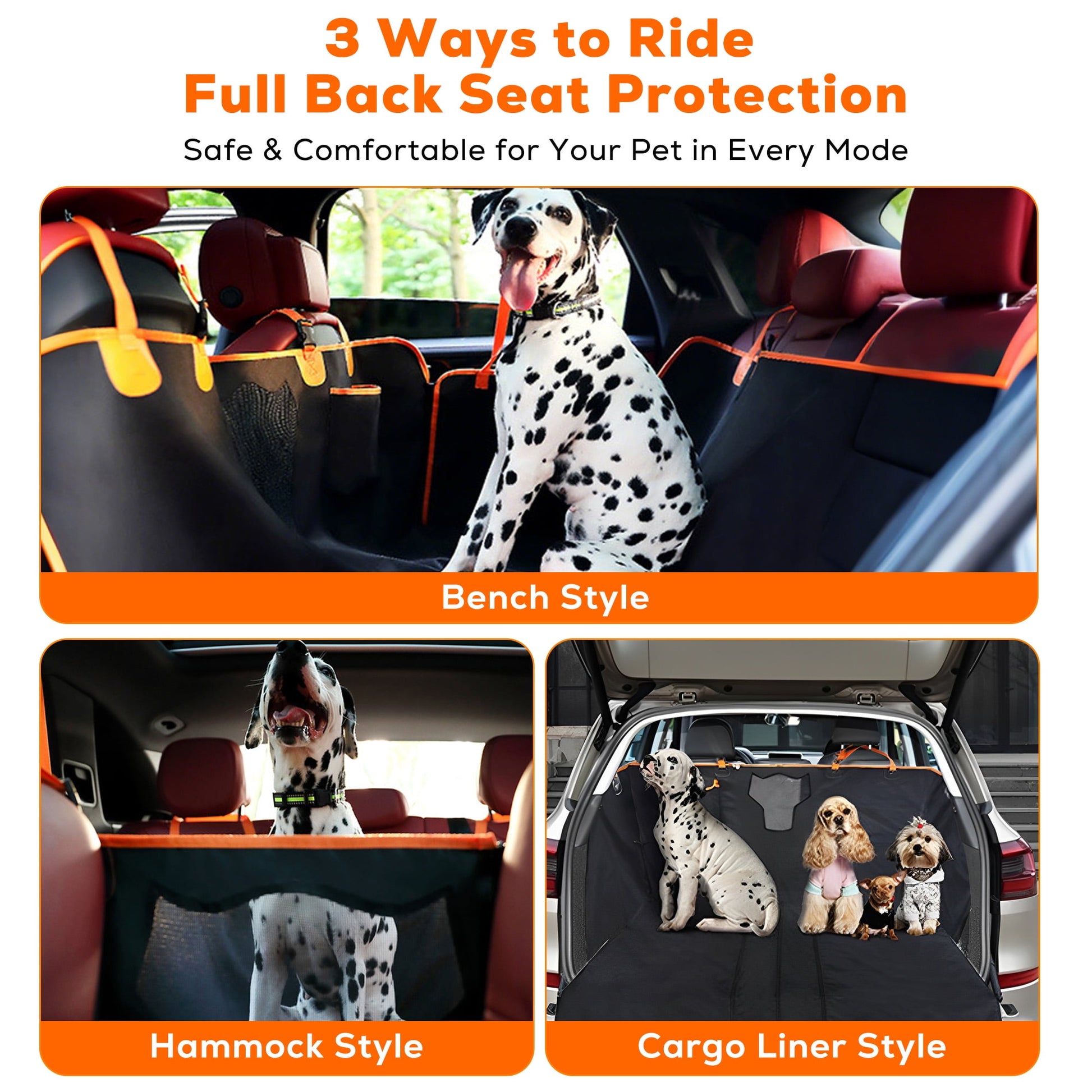 - Safety and Multi-function: The pet car cover backseat protector is not only designed as a dog hammock with safety belt side wings to ensure the car mat is safely and stably connected to the car, but also can be used as a bench car seat cover protector or trunk cargo liner. After being removed from the car and unfolded, this backseat dog seat cover can be transformed into a camping mat, allowing your family and friends and cute pets to share the sunshine and have a picnic together