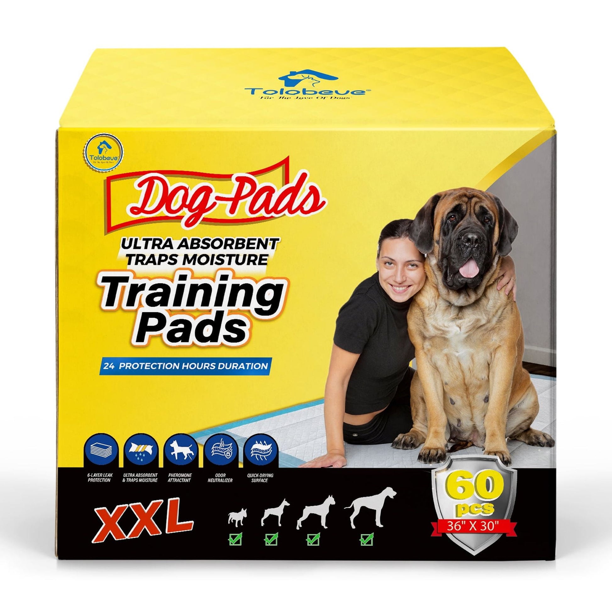 Tolobeve Dog Training Pads, XXL, 30 in x 36 in, 60 Count Disposable Dog Puppy Pee Pads
