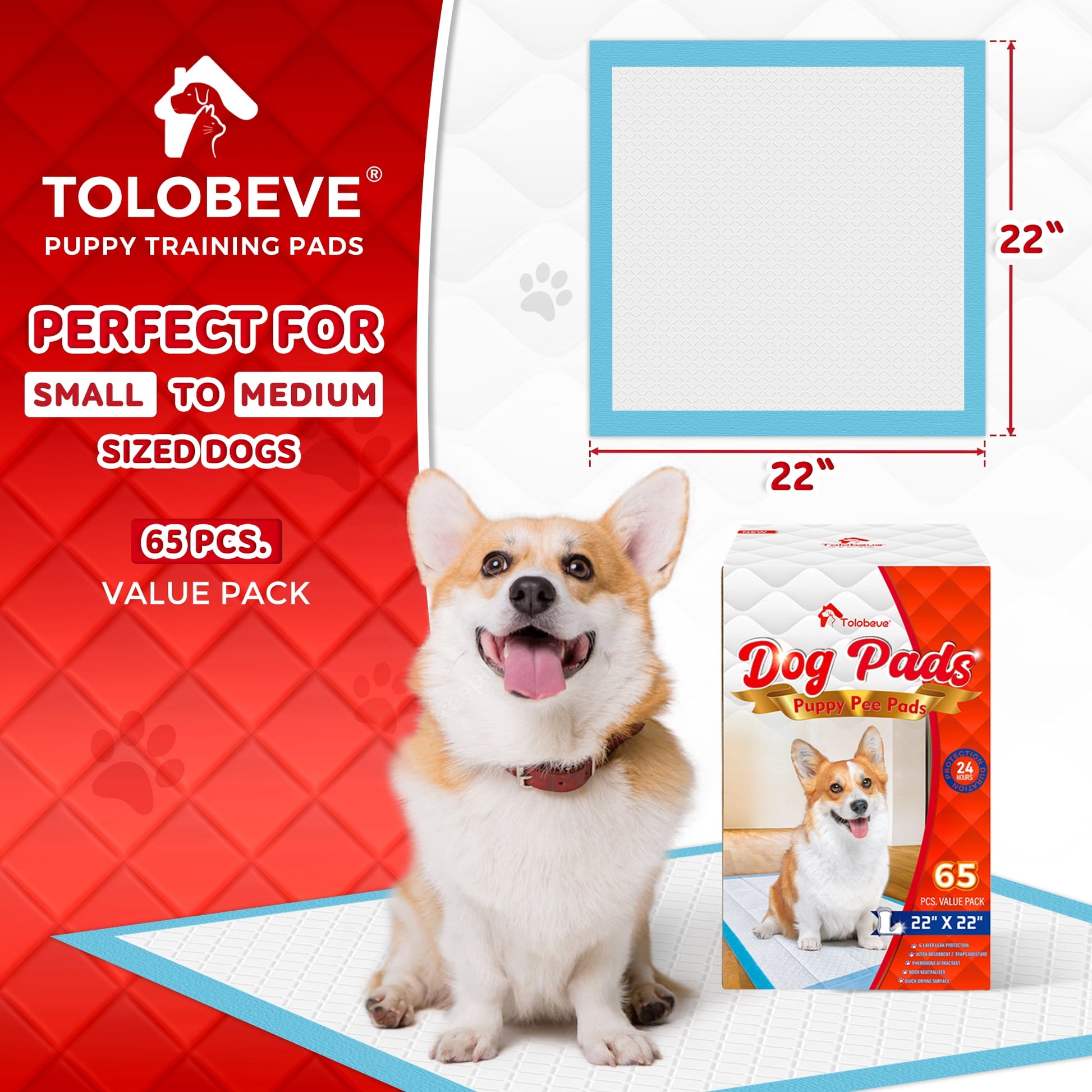 Tolobeve Puppy Pads Training Pads, Large, 22 in x 22 in, 65 Count Disposable Dog Pee Pet Pads