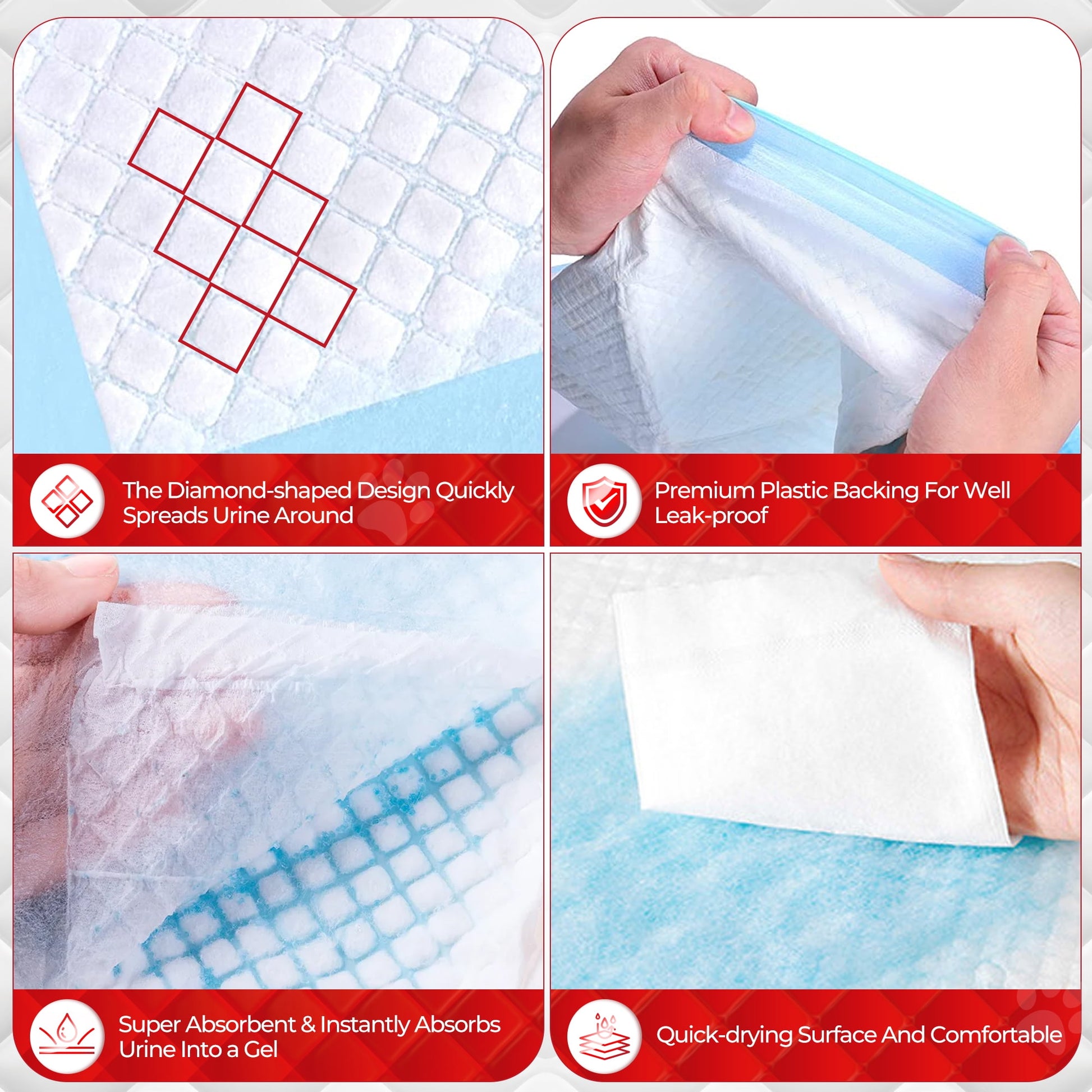 - Splash-Prevention Quilted Pattern ? Our pee pads for puppies boast an embossed pattern that helps direct urine and slow the spread, while the strong backing and sealed edges help prevent leaks for safer, more reliable indoor crate training