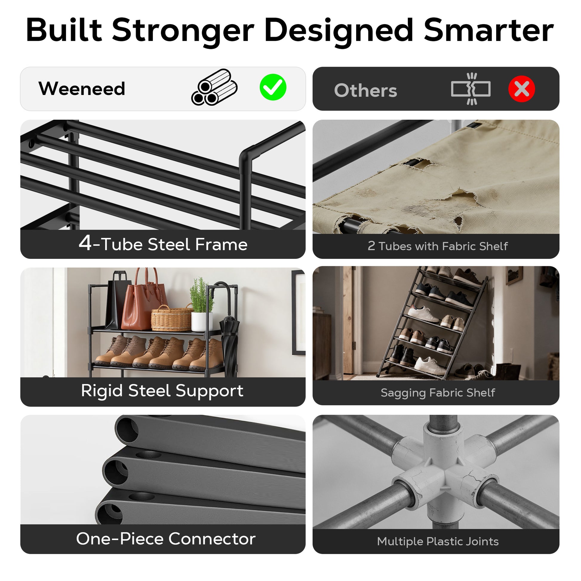 WEENEED 3-Tier All-Steel Shoe Rack, Stackable & Adjustable Metal Shoe Organizer for Entryway, Closet, or Bedroom, Heavy-Duty Storage Shelf for Boots and Heels
