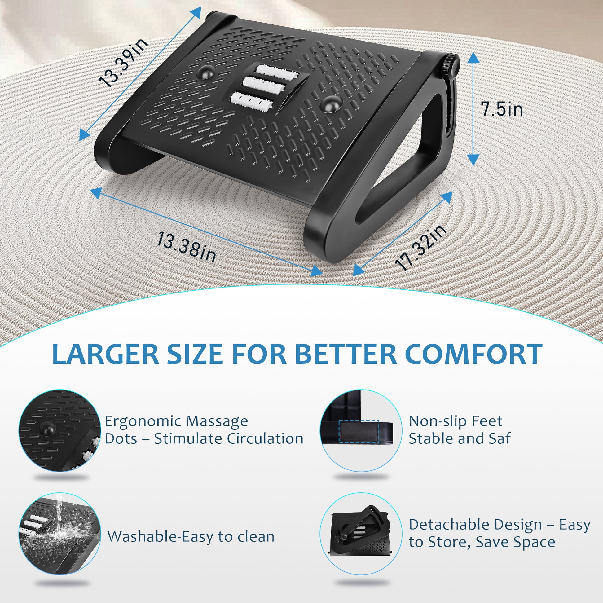 - 6 Adjustable Heights: Easily adjust the footrest to six height levels (3.5" to 7.5") to find the most comfortable angle for your desk setup. Simply rotate the side knobs to lock in place—no tools needed.