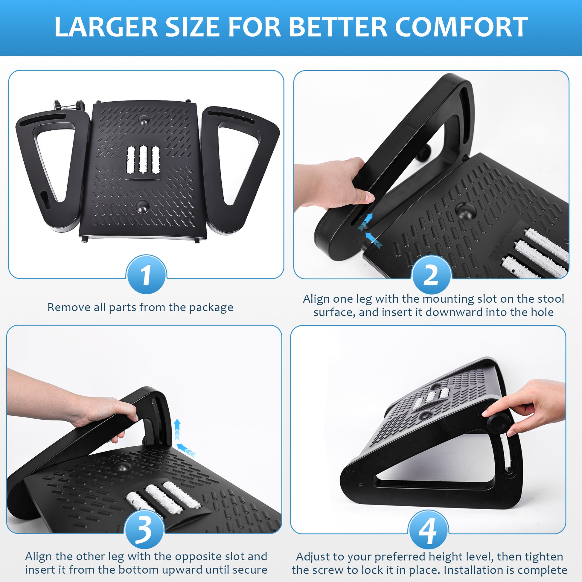 - Portable & Easy to Assemble: Lightweight and detachable for convenient storage and travel. Whether at the office, home, or on the go, this under desk foot rest provides comfort wherever you need it.