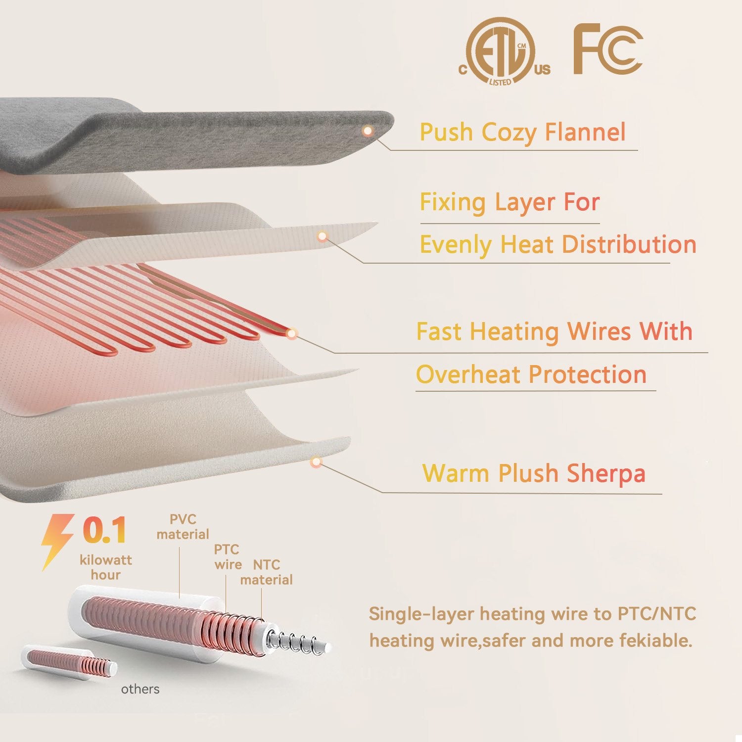 - Safety Certified: Equipped with ETL and FCC dual certification, the blanket is tested for durability, performance, and quality, ensuring long-lasting comfort.