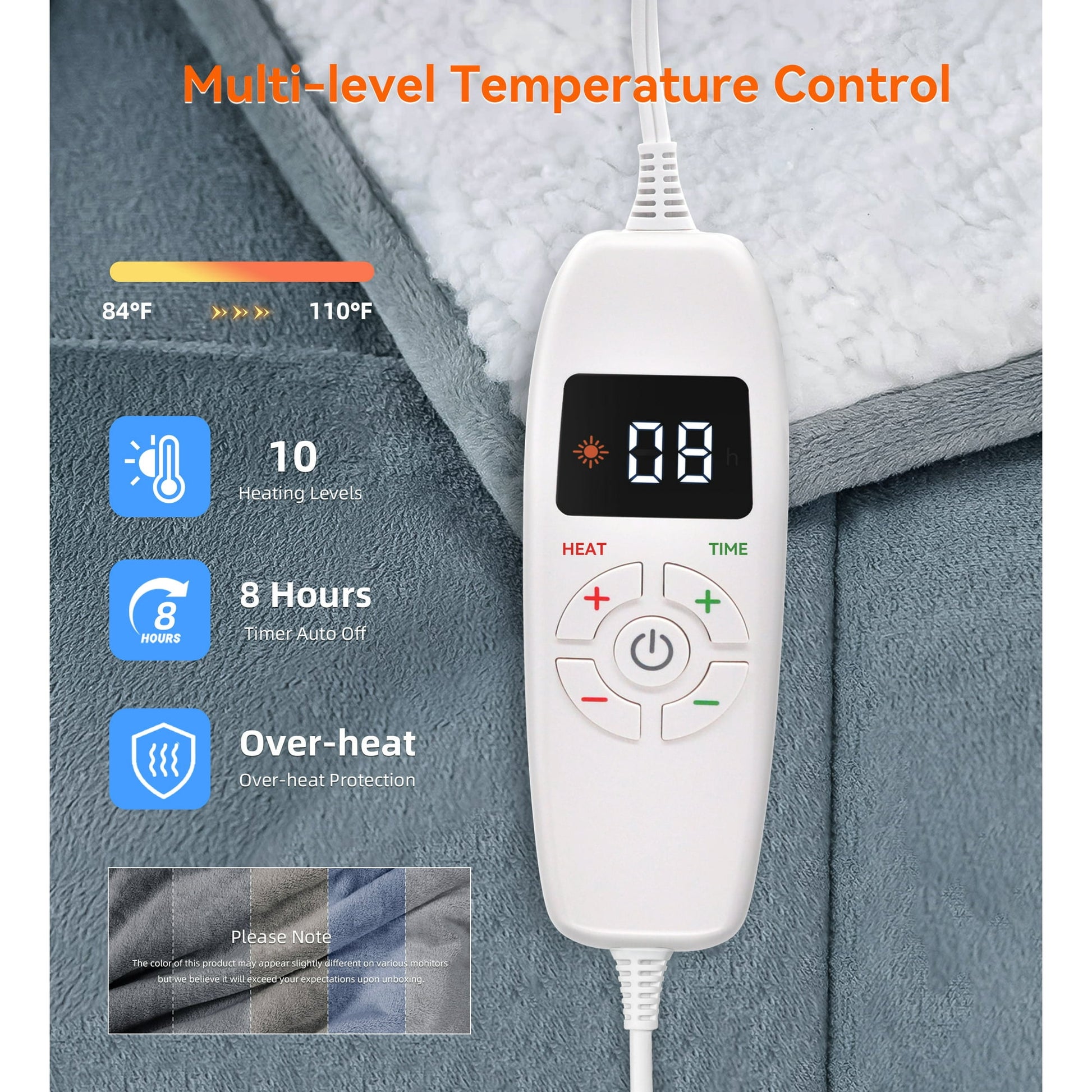 - Energy Efficient: Certified by ETL, FCC, and CA65, the blanket includes advanced temperature monitoring and an 8-hour auto-off timer for safety and energy savings.